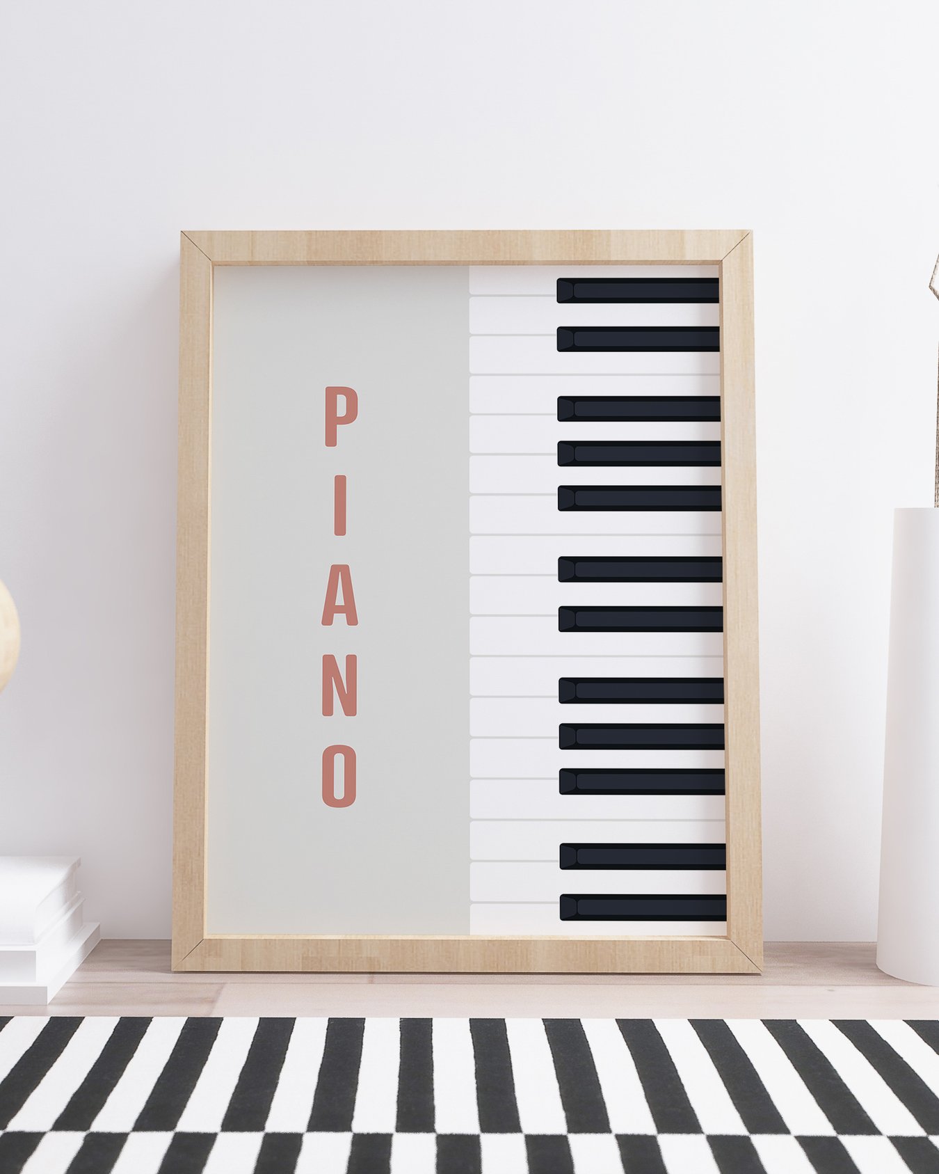 Retro style piano key print, available in neutral and mint tones. This graphic style instrument poster is perfect for music lovers and musicians.